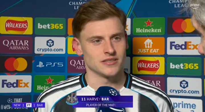 Newcastle United and FC Barcelona played out a dramatic 1–1 draw at St James’ Park on Tuesday night, but the action didn’t end when the final whistle blew. Instead, the spotlight quickly shifted to the post-match interviews after Newcastle’s Man of the Match Harvey Barnes delivered a sharp response to comments made by Barcelona youngster Lamine Yamal.