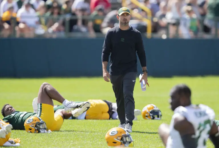 Aug 11, 2023; Cincinnati, Ohio, USA; Green Bay Packers head coach Matt LaFleur walks off the field after a victory over the Cincinnati Bengals at Paycor Stadium. Mandatory Credit: Katie Stratman-Imagn Images